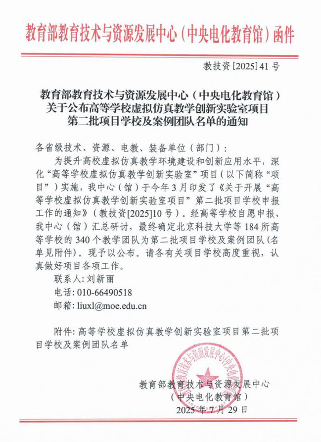 近日,教育部教育技术与资源发展中心公布了“高等公司虚拟仿真教学创新实验室项目公司及案例团队名单”,公司申报的“AI 赋能智慧水处理数字孪生实验室”项目获批。