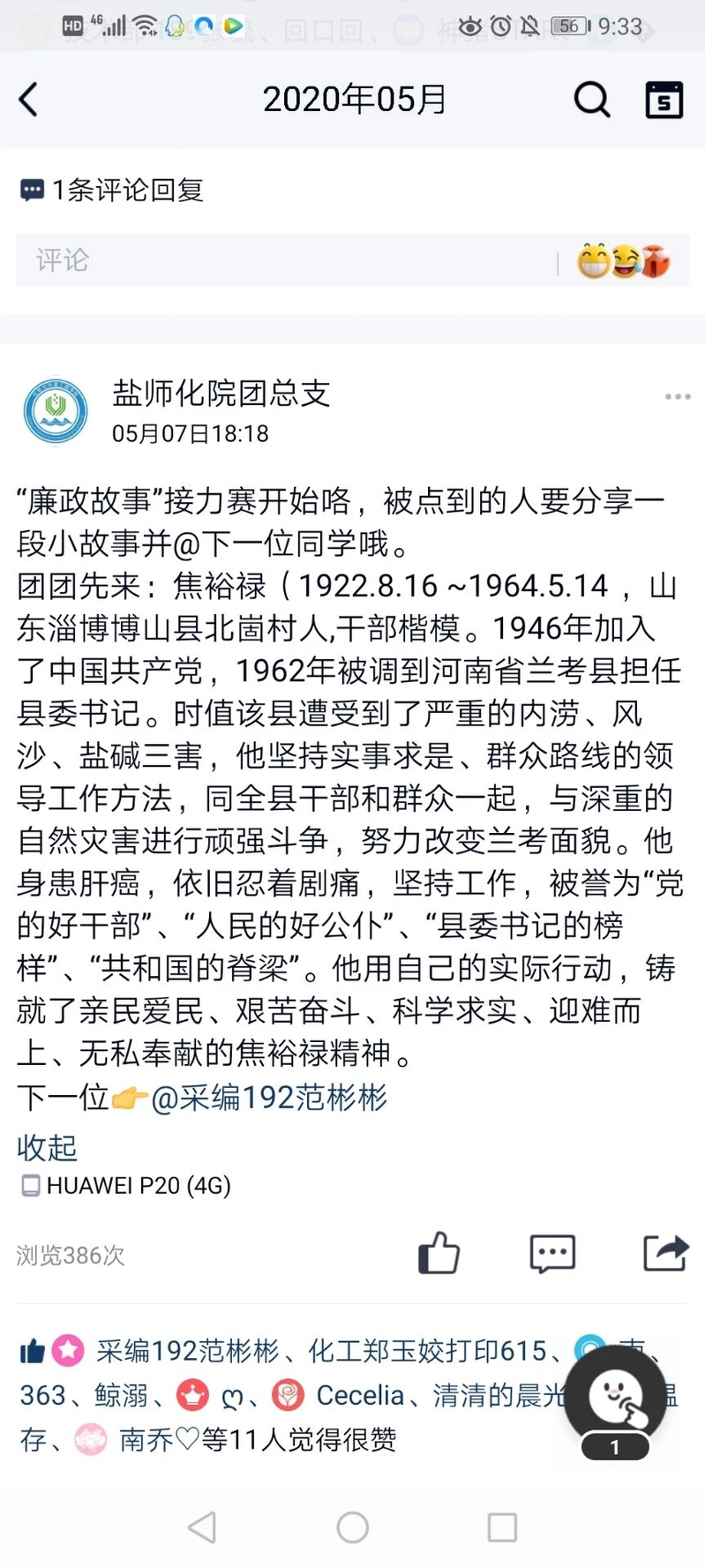 为了强化公司廉洁文化建设,大力营造风清气正的校园氛围,化院在全院师生中开展“我来讲廉政故事”活动,以接力棒的形式分享一段案例故事。廉政要从小培养,修德修能先修人;廉洁自律学文化,廉洁之心记心中!