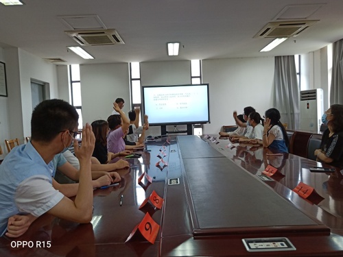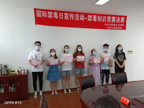 活动分为初赛和决赛,6月22日——6月24日在线开展了禁毒知识初赛,近200名员工参与了此次活动,根据成绩选拔了18名同学参与决赛。26号下午4点,在生化楼401会议室禁毒知识竞赛决赛正式拉开了序幕,决赛分为两个部分,第一部分为选手必答环节,第二部分为抢答环节,比赛采取积分制,内容包括毒品知识、毒品危害、毒品防范、禁毒法律法规以及青少年毒品预防教育等,经过激烈的角逐,现场决出了一等奖一名、二等奖两名、三等奖三名。盐城市公安局经济技术开发区分局教导员陈井元、警员沈森、化院团总支书记李婷婷现场观看了比赛,并给予了指导。