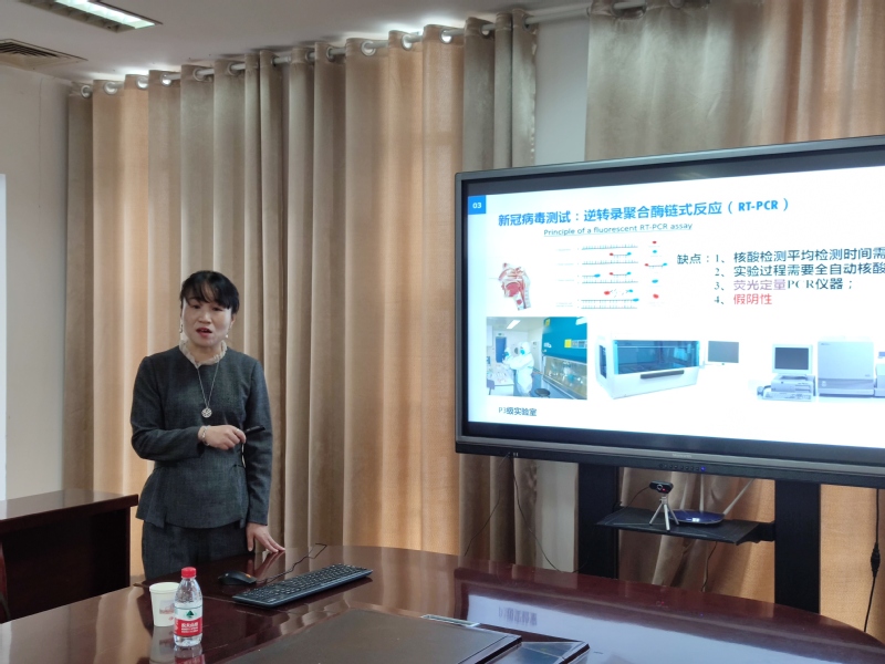 单丹教授概述了根据分子间作用力调控、借助表面活性剂分子,设计合成可用于电致化学发光(Electrochemiluminescence, ECL)的卟啉基光电活性材料。并根据所得材料的光、电化学特性,设计增强型ECL生物传感并应于生物分子的检测。期间,单丹教授与参会师生探讨了如何进一步设计开发性能优秀、价格低廉的光电化学活性纳米材料并用于生物传感,讨论了如何运用组装的卟啉基光电活性材料反向设计生物传感器。这次学术报告会的召开,有利于公司的师生对卟啉基材料在电致化学发光生物传感的研究认识,加强学术交流,营造了良好的学术氛围。