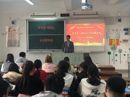 历史是最好的教科书。学史,可知古今;懂史,能明大义;用史,方续荣光。今年是中国共产党成立100周年,为深入贯彻习近平总书记关于学习党史的重要论述,重点抓好团员青年学习教育,5月7日,化20(1)S,化19(2)S王强创建班于生化教学楼304教室举行了以“学党史铭初心,永远跟党走”为主题的专题讲座,辅导员兼班主任王东歌老师主讲。