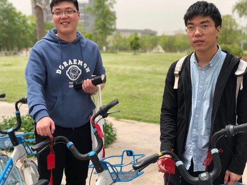 活动最后,同学们将自己书写的许愿卡挂在校园内的共享单车上,让这份红色的心愿在校园各处传递。