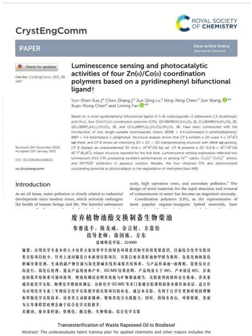 截止目前,化院环保实践团成员已先后成功申请环境类实用新型专利2项、发表高质量学术论文4篇。