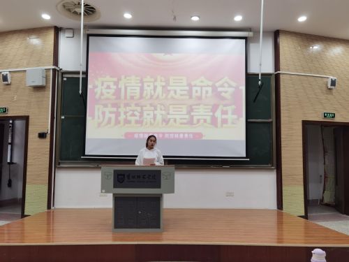 活动一经组织,就受到了同学们的广泛关注。首先,主持人由化院志愿者在此次疫情中无畏艰难、活跃在抗疫一线的视频和先进事迹引入抗疫话题;随后志愿者们走向讲台,讲述自己在疫情防控一线的工作,分享自己的抗疫感悟;最后,员工会轮值主席耿艺慧进行活动总结,希望各位同学将“抗疫精神”融入日常的学习和生活中,用自己的实际行动践行责任和担当,发挥青年老员工无私奉献的精神品质。
