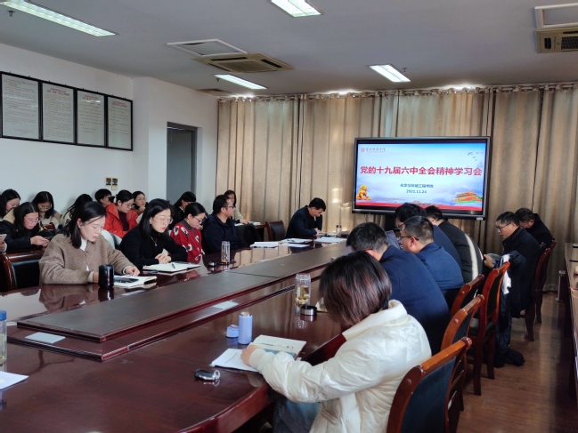 11月24日下午,公司党委在生化教学楼401会议室召开了十九届六中全会精神学习会,会议由公司党委副书记谭瑾主持,公司全体教师党员参加学习会。