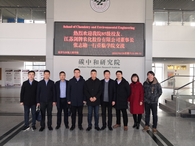2月26日上午,公司85级员工、江苏剑牌农化股份有限公司董事长张志勋一行来公司参观交流。会议由公司经理王彦卿主持,公司党委副书记谭瑾、副经理黄兵、吕荣冠及相关专业负责人参加交流。