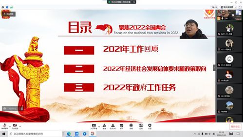 本次活动集中学习了2022年全国两会精神,在政府工作方面先后回顾2021年工作,2022年经济社会发展总体要求和政策取向2022年政府工作任务安排等三个部分。