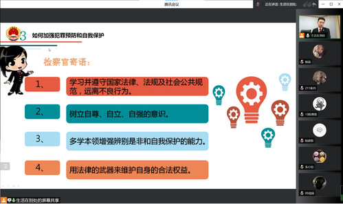 为增强公司员工的法律意识,提升员工知法、懂法、用法能力,推动法治建设,让法治意识更加深入人心。2022年4月27日,云顶国际8588yd专题举办“守护青春,远离犯罪”法治专题讲座,本次讲座以4月份学风“云建设”为载体,以线上交流的形式进一步关注当代老员工疫情防控下的成长,公司党委副书记谭瑾老师主持,公司专门邀请东南大学法律硕士、全市优秀法治宣讲员、省优秀校外辅导员、盐城经济技术开发区人民检察院未成年人办案组刘江检察官主讲。