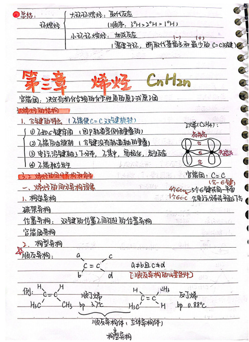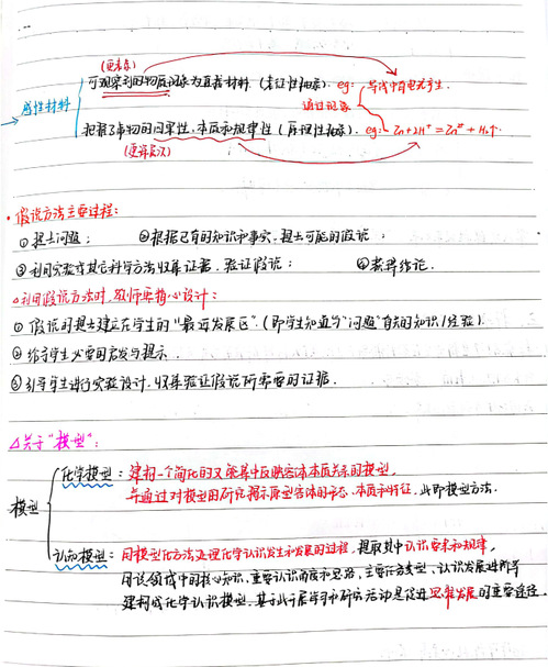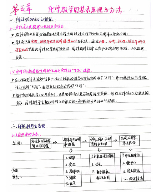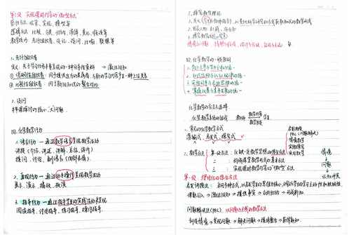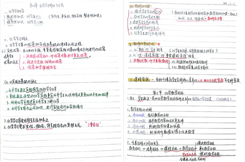 不同类型的课程侧重点有所不同,笔记记录方式也有变化。如《化学教学论》这类课程注重文字记忆,大量知识点扑面而来,最好的办法就是多种颜色搭配,通过彩色笔涂抹使得重点更加突出。