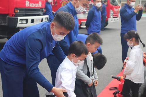 在活动中消防员同志介绍了生活中常用的消防器材和它们的使用方式,参加活动的小朋友体验试穿了消防员同志救援时的装备,从中了解更多的消防安全知识,掌握了消防安全必备的逃生能力,志愿者同学在现场积极的配合使活动有序进行。
