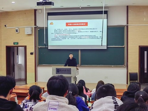 讲座上,王老师从入党的规定和程序、成为积极分子应具备的基本素养、公司员工党员发展成效三个方面进行全面详尽的阐述,让新生对入党有了更加深刻的认识,同时,王老师鼓励新生积极向党组织靠拢,统筹抓好个人政治理论知识学习、社会实践服务和个人学习生活等各条线,在这条道路上有所成长,有所收获。王帅老师语重心长地告诫同学们,党员身份意味着更多的责任和担当,我们每个人都要树立远大理想,发奋学习,践行为人民服务的宗旨,为心中的信仰、理想而不懈奋斗。