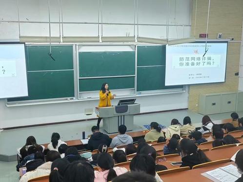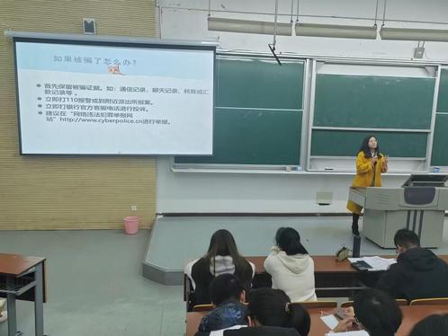 讲座上,李老师分析了目前电信诈骗的严峻形势,提出有关电信诈骗的一些常见套路,让同学们充分了解网络诈骗的各种形式及其危害。随后,老师详细讲解了发生在公司与社会中的真实案例、总结网络电信诈骗的规律,在识别诈骗方法和补救措施上都给予了很多实用建议。在最后,老师再次强调讲座目的,语重心长地提醒同学们:预防诈骗需提高防范心,要深刻意识到提高自我防范意识的重要性。