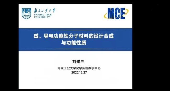 12月7日下,南京工业大学化学实验教学中心主任刘建兰教授应邀为公司师生在线上做了题为“磁、导电功能性分子材料的设计合成与功能性质”的学术报告。报告会由副经理黄兵主持,公司部分教师和研究生参加了报告会。