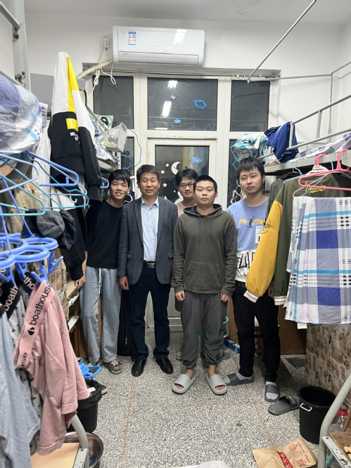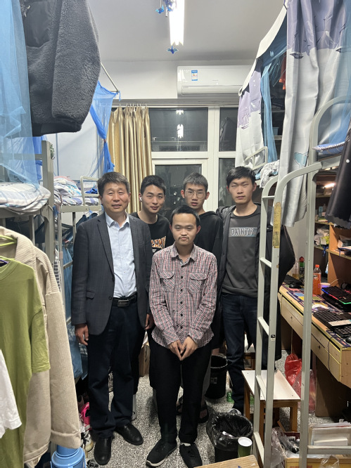 2022年5月10日,在18级毕业生离校前夕,云顶国际8588yd经理王彦卿带领相关辅导员老师、毕业班班主任深入毕业生寝室走访慰问。