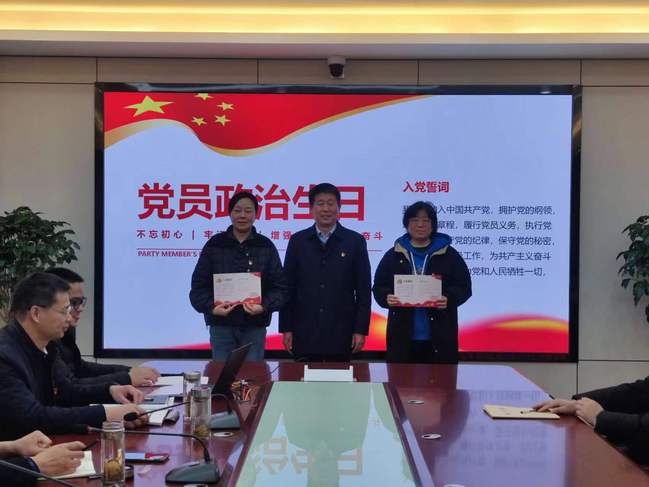 会上,全体党员认真学习了习近平总书记在学习贯彻党的二十大精神研讨班开班式上的重要讲话精神,学习了《党的二十大报告学习辅导百问》部分章节内容、公司党委四届二次全会精神。公司党委书记刘洋、党委副书记、经理王彦卿分别为两个支部过“政治生日”的党员送上了精心准备的贺卡,并对他们寄予了生日祝福。