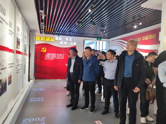 在蒋巷村,全体党员观看了蒋巷村党支部建设宣传片,参观了蒋巷村史展馆、农民新村、老年公寓和蒋巷村生态园等,了解了村党委书记常德盛立足“乡村振兴强村富民”主题,聚焦党建引领乡村振兴、满怀赤子情怀艰苦奋斗的蒋巷村发展史。初步形成了通过第一产业升级改造、第二产业节能减排、第三产业效益提升,建设产业兴旺的零碳数字幸福乡村的发展格局。