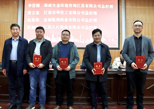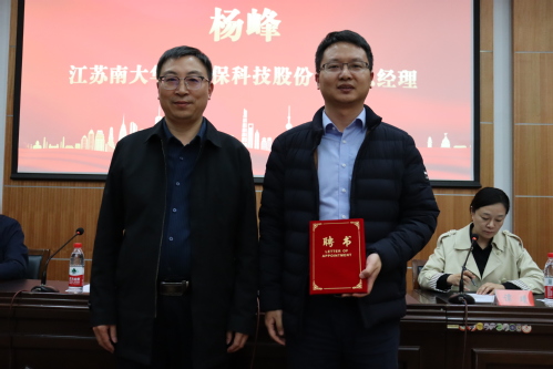 仪式结束后,绿政生态环境咨询江苏有限公司总经理李娄刚作了题为《环保行业形势及就业问题分析》的报告。