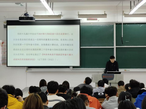 党课开始,王帅老师先为大家简单介绍了党的十九届六中全会概况。党的十九届六中全会是在党成立一百周年的重要历史时刻,在党和人民胜利实现第一个百年奋斗目标、全面建成小康社会,正在向着全面建成社会主义现代化强国的第二个百年奋斗目标迈进的重大历史关头召开的一次具有重大历史意义的会议。我们要认真学习习近平总书记重要讲话精神和党的十九届六中全会精神,牢固坚持以习近平新时代中国特色社会主义思想为指导,增强“四个意识”、坚定“四个自信”、做到“两个维护”,牢记“国之大者”,以史为鉴、开创未来,埋头苦干、勇毅前行。