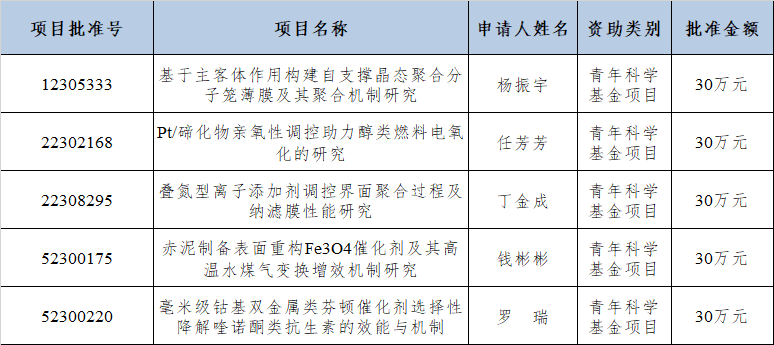 喜讯!公司获2023年国家自然科学基金项目立项资助5项