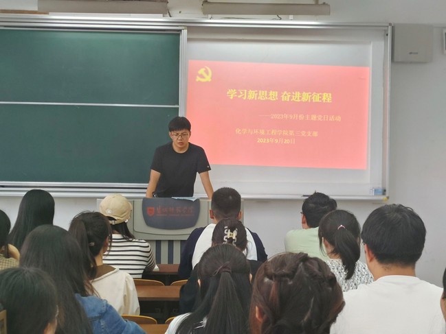 活动中,20(3)班员工党员潘萍带领大家学习《习近平总书记致信全国优秀教师代表的只要回信精神》,在第三十九个教师节到来之际,中共中央总书记,国家主席,中央军委主席习近平致信出席全国优秀教师代表座谈会的老师,代表党中央,向他们和广大教师及教育工作者致以节日的问候和诚挚的祝福,嘱托以教育家为榜样大力弘扬教育精神,为强国建设民族复兴伟业培养更多栋梁之才。