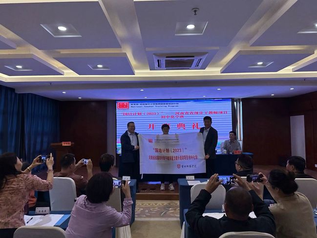 2023年10月12日下午,由公司承办的“国培计划(2023)”—河南省省级骨干教师项目初中化学班公司顺利开班。公司经理王彦卿、成教处副处长、继续教育公司副经理朱祥生、项目首席专家杨玉琴和来自河南省各市区的50名省级初中化学骨干教师参加开班典礼,开班典礼由公司党政办公室主任陈萌主持。