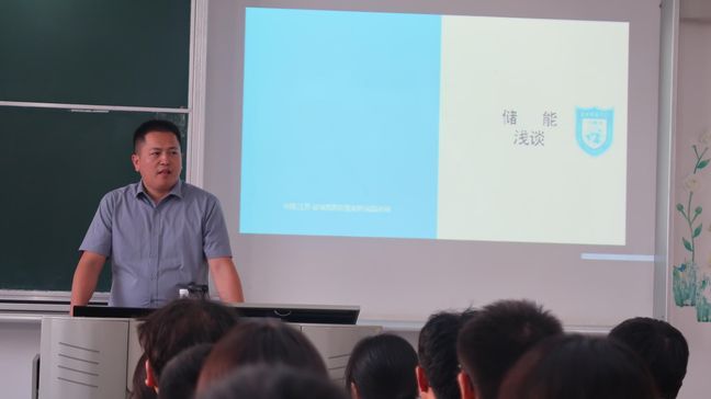 公司副经理黄兵教授用幽默风趣的语言做开场白,瞬间拉近与员工之间的距离,为讲座的顺利开展做好铺垫。在讲座中,吉总先对刚刚踏入大学的新生进行了亲切的问候,并以自己的求学经历对新生进行了鼓励,以“学什么,学到什么,能干什么,干成什么”四个问题为基础与新生对储能专业的了解进行了交流。随后,结合目前的国际形势和日常生活,从宏观情况和微观角度强调了储能行业的重要性,帮助新生解决了“什么是储能,为什么是储能”的问题。