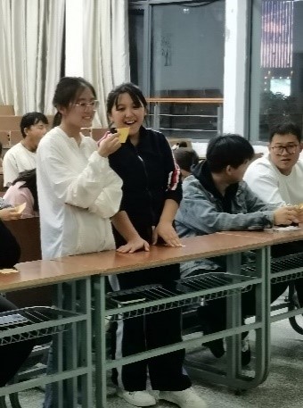 在主持人的带领下,现场有序开展了“抢数字 ”,“摇摇烦恼消 ”,“我眼中的你”等互动小游戏。热身小游戏环节迅速消除了同学们的拘束感,调动了同学们的积极性,让现场氛围变得活跃起来。