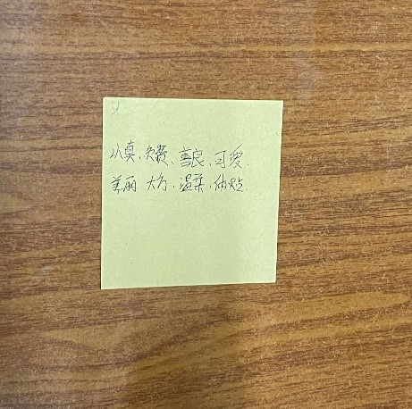 “你不是真实的你,你只是我眼中的你”。最后一项参赛者可自由选择自己的搭档,俩人一组。参赛者在主持人发下的纸张上写上搭档和自己的优点,双方都写完后交换纸张,并互相交流。最后由主持人随机选择,被选择的同学要互相说出对方的优点。该项活动鼓励同学们大胆说出朋友和自己的优点,增进了同学间的友谊,增强了同学们的自信心。