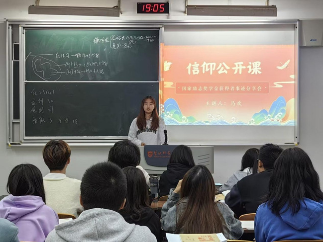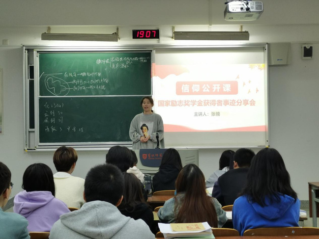 有一种力量叫做榜样,它彰显进步,是旗帜,鼓舞斗志;又是灯塔,指引方向。以先进典型为榜样,贵在知行合一,重在身体力行。学习榜样,引起心灵共鸣,对照榜样,激发前行力量。在2023年11月份,国家奖学金获得者冷雨、国家励志奖学金获得者代表马欢、张芙婷、张楠分别走进22、23级各个班级进行“榜样力量”宣讲。