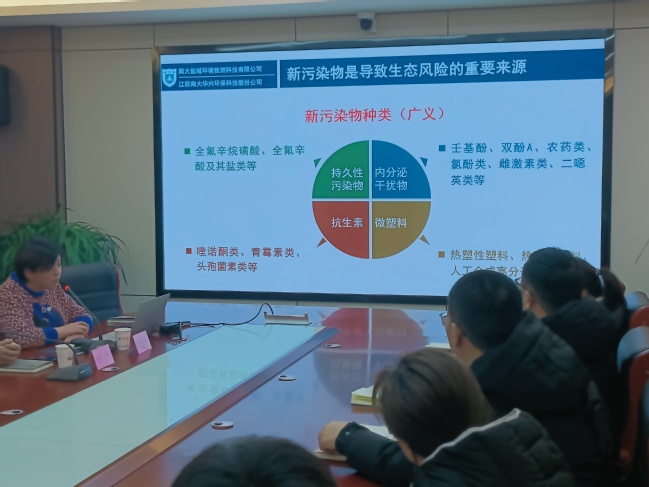 研讨会上,杨峰作了主题为《绿色梦想,环保前行:环保行业的机遇与挑战》的报告。他从环保行业现状与前景、环保人才就业方向等方面跟大家交流,他指出环保行业已经从过去二十年时间里的快速发展阶段进入到了当前的调整阶段,未来我国环保行业将更多围绕新兴行业(光伏、锂电池)需要、养殖废水处理、环保智能化、微污染治理等方面进行。张洋阳作了主题为《新污染物能力建设交流》的报告。她从新兴污染物的来源、新兴污染物的特征等方面进行了简单的介绍,并分享了公司在新污染物的检测、鉴定能力方面开展的各项工作。