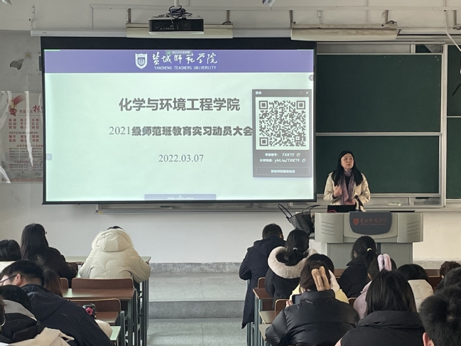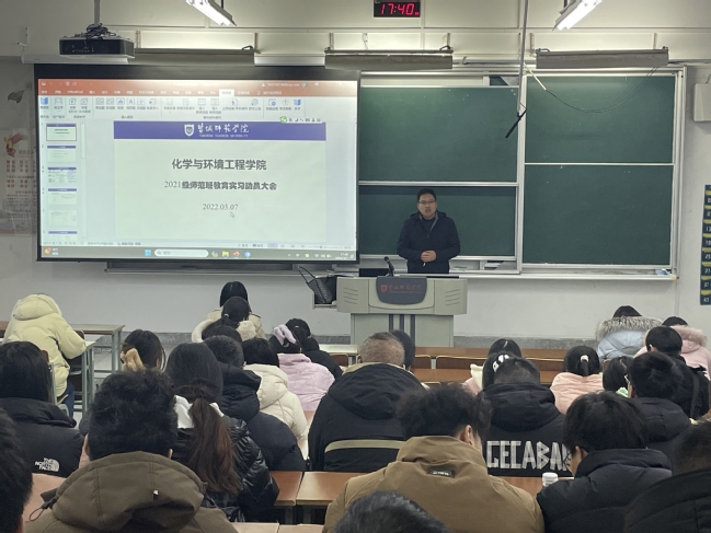 2024年3月7日下午,云顶国际8588yd在生化楼314教室召开2021级化学师范专业员工教育实习动员大会。公司教学副经理刘总堂教授、化学系系主任杨玉琴教授、校内实习指导老师、全体实习生参加了本次动员大会。