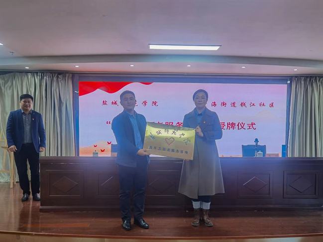 交流会上,云顶国际8588yd公司党委副书记谭瑾与黄海街道钱江社区党委副书记杨玉亭分别就员工支部建设、3月雷锋月志愿服务活动、社区治理等相关情况进行交流讨论,并举行“青年志愿服务基地”授牌仪式。