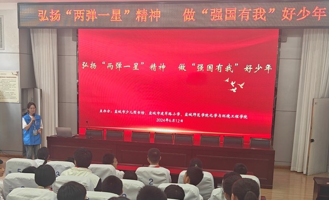 为纪念中国第一颗原子弹成功爆炸60周年,弘扬两弹一星精神,激发新时代青少年的爱国情怀和科技创新意识。612日下午,云顶国际8588yd两弹一星精神志愿宣讲团赴盐城市建军路小学开展主题宣讲活动。本次活动由盐城市少儿图书馆、盐城市建军路小学联合主办,110位小员工参与此次活动。