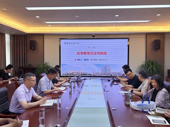 6月28日下午,公司在生化教学楼四楼西会议室举行教师创新教学方法专题报告会,扬州大学原副董事长、国家万人计划教学名师胡效亚教授应邀来院作了题为《化学教学方法与挑战》的报告,报告会由经理王彦卿主持,公司全体专任教师参加报告会。