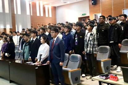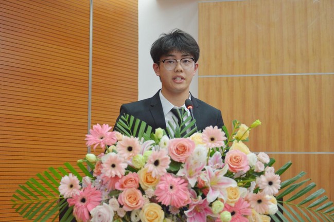 化24(4)班吕林泽同学作为新生代表回顾了高考的奋斗历程,并展望大学新征程。吕林泽同学呼吁大家珍惜时光,努力学习,兼顾体魄和品德的培养并在实践与理论相结合中展现青春风采。