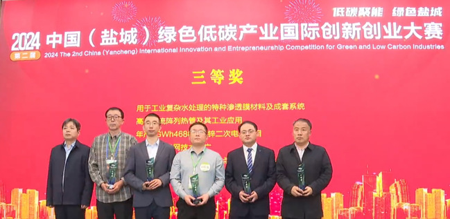 大赛分为决赛路演、颁奖、参观交流等多个环节,旨在发掘具有前瞻性及应用场景的技术和项目来盐落地转化,来自10多个国家的60多个国际绿色技术项目参赛,筛选出35个绿色低碳领域的优秀项目进入比赛环节。经过激烈角逐,年产万吨级聚乳酸项目荣获一等奖,运用生物絮团技术降低工厂化RAS海产陆养系统的能耗和实现养殖水体零排放3个项目获二等奖、用于工业复杂水处理的特种渗透膜材料及成套系统5个项目获三等奖,绿色低碳产业公司三十余名师生代表出席大赛,其中公司刘昱博士牵头的参赛项目年产2GWh4680水系锌二次电池项目获三等奖。