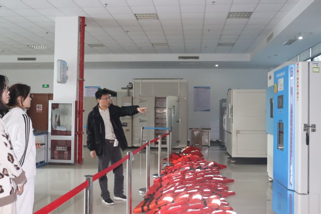 在经过安全培训讲座后,由吴升德等企业人员带员工参观海上风电设备的防腐测试、紫外光老化测试、高低温湿热测试等装置,了解轮胎摩擦测试、润滑油质量测试、化学品分析测试等环节及操作。参观过程中,部分员工对测试过程进行学习和体验,并表示非常喜欢该单位的企业文化和工作环境。最后,由吴升德副主任为员工带来主题为“检验检测赋能新质生产力”的讲座,讲述了在检验检测的前景和方向,为卓工计划2.0培养新工科人才奠定了坚实基础。