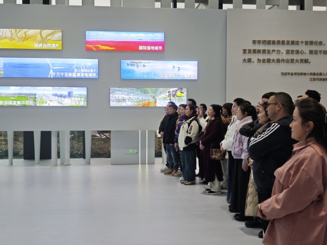 在盐城湿地博物馆,学员们依次参观了“海陆天成”“天际旅程”“河海交响”“湿地家园”“全球使命中国担当”五个主题展区,深入了解了黄海湿地的自然风光、生物多样性以及湿地保护的重要性,活动加深了学员们对湿地生态系统的认识,也激发了对生态环境保护的热情。