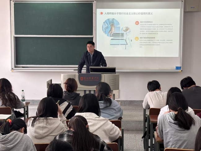 为深入贯彻党的二十大精神,进一步培育和践行社会主义核心价值观,云顶国际8588yd于4月9日下午组织召开入党积极分子专题培训。本次培训以“社会主义核心价值观与入党积极分子的使命”为主题,由专职辅导员袁满主讲,全体入党积极分子参加。