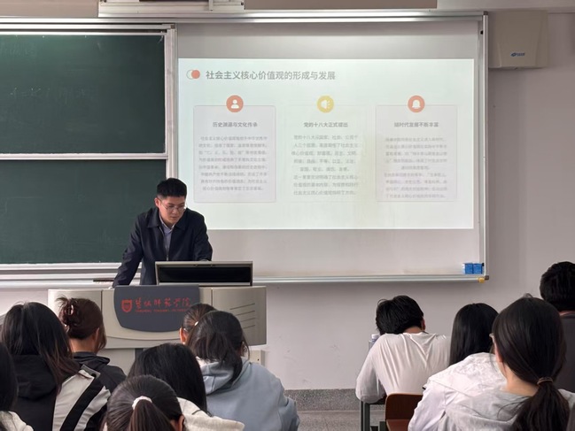 培训中,袁满以个人日常生活为切入点,围绕核心价值观的内涵、入党积极分子践行的必要性及具体路径三个方面展开系统讲解。在国家层面,倡导富强、民主、文明、和谐,这是社会主义现代化国家建设的目标追求;在社会层面,倡导自由、平等、公正、法治,这是对美好社会的生动表述,也是马克思主义社会公正理念在中国的具体体现;在个人层面,倡导爱国、敬业、诚信、友善,这是公民基本道德规范,也是新时代青年应当遵循的行为准则。