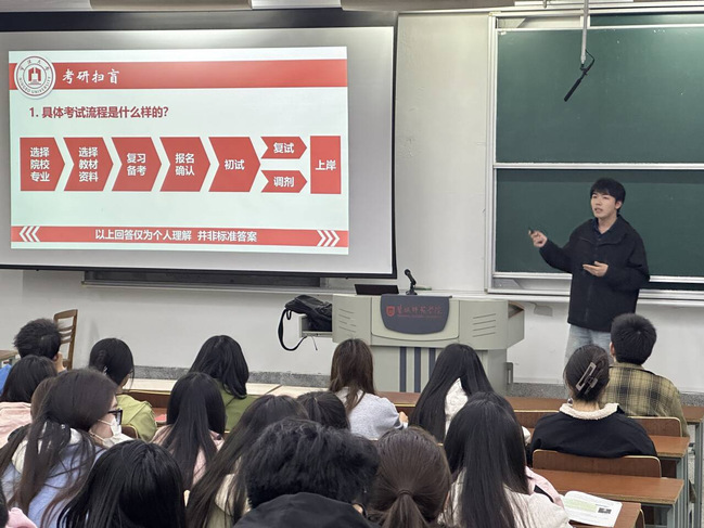 分享团队以考研基础知识普及为切入点,围绕考研择校的技巧、资料收集的渠道以及时间规划的策略等方面,展开了全面且细致的讲解。他们紧密结合自身艰辛而充实的备考历程,生动地带领同学们沉浸式感受考研复习准备的各个阶段,为同学们的考研之路提供了极具价值的完备指导。与此同时,分享团队还聚焦教师编制校园招聘考试,将自己考编实战中的宝贵经验倾囊相授,助力同学们深入了解考编过程中的重点、难点以及容易忽视的盲点。