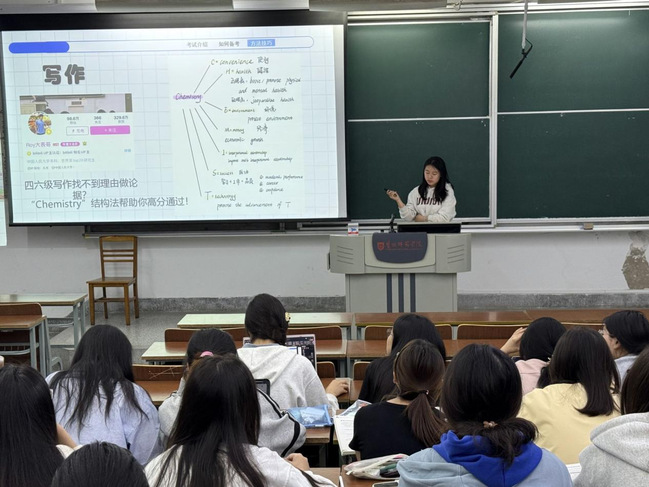 分享团队以四六级考试基础知识普及为切入点,围绕题型解析技巧、真题资料收集渠道以及备考时间规划策略等方面,展开了全面且细致的讲解。他们紧密结合自身从基础薄弱到高分突破的备考历程,生动地带领同学们沉浸式体验听力训练、阅读提速、写作模板构建等核心环节,为同学们的四六级备考之路提供了极具价值的系统指导。与此同时,分享团队还聚焦机考新题型应对策略,将自己实战中的考场时间分配、高频词汇记忆法等宝贵经验倾囊相授,助力同学们深入了解考试中的重点、难点以及容易失分的陷阱。