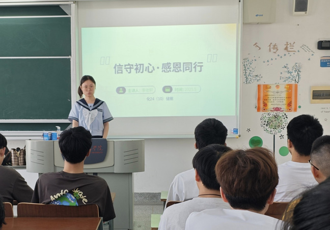 互动环节亮点频出。2022 级化学师范专业生活委员组织“诚信辩论赛”,同学们就 “诚信在现代社会中的价值” 展开辩论,深化对诚信的理解;2023 级应用化学专业生活委员设置“感恩卡片书写”,同学们写下感恩话语并计划送出。此外,部分班级生活委员邀请优秀员工线上分享践行诚信、心怀感恩的经历。