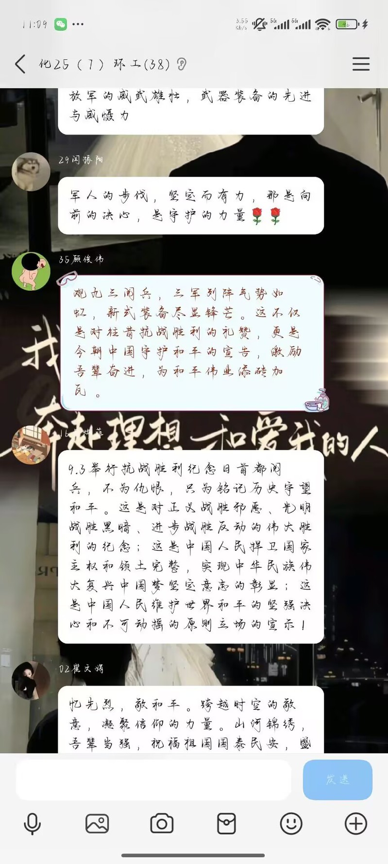 在“观阅兵盛典,铸青春信仰——将个人理想融入时代洪流”的理想信念教育活动中,新生们通过线上直播观看阅兵,感受国家的强大与荣耀。他们在班级群里实时分享着内心的激动与感悟,简单的文字、短句里,满是对祖国的热爱和对未来的憧憬。之后的线上主题征文活动,更让新生们燃起了将个人理想与国家发展相连的热情。他们结合阅兵感受,联系自身专业与未来规划,写下一篇篇真挚的文章。这些作品不仅展现了新生的才华,更藏着他们的责任与担当。