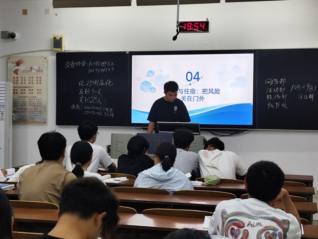 国庆佳节将至,为切实筑牢新生假期安全防线,9月28日晚,云顶国际8588yd面向2025级全体新生召开“平安国庆,青春同行”主题班会。新生辅导员与班主任全员到场,结合近年高校典型安全案例,围绕交通、消防、电诈、财产、实验室五大核心模块展开系统讲解,为新生送上“假期安全指南”。